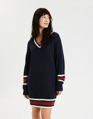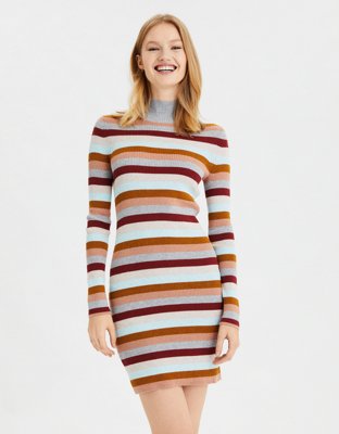 Ae Striped Mock Neck Sweater Dress