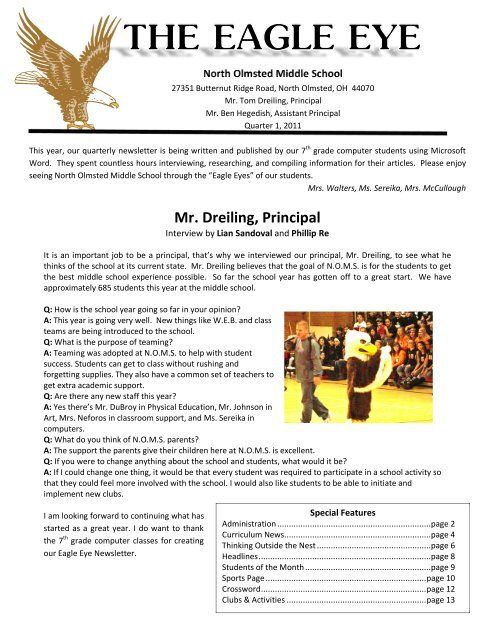 Mr Dreiling Principal North Olmsted City Schools
