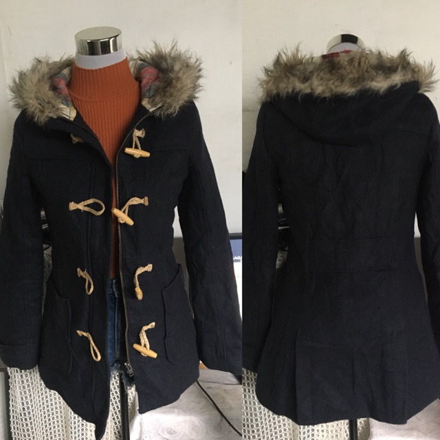 Womens American Eagle Outfitters Navy Blue Winter Coat Fur