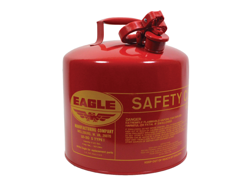 Find eagle safety gas can 5 gal f2218111 in the gas cans category at tractor supply coeagle safety gas can 5 gal. For nearly 60 years eagle manufacturings safety can product line has been a industry leader of galvanized type i and type ii safety cans that meet osha and nfpa code 30 requirements and are ul and ulc listed and fm approved for safe storage and handling of flammable liquids. Eagle galvanized type i safety can for safe handling and storage of gasoline and other flammable liquids.