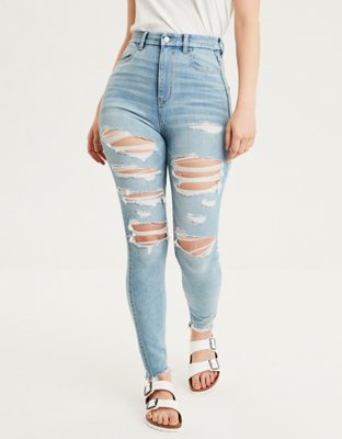 Details About American Eagle Super Stretch X Distressed Two Tone Jeans Size 4