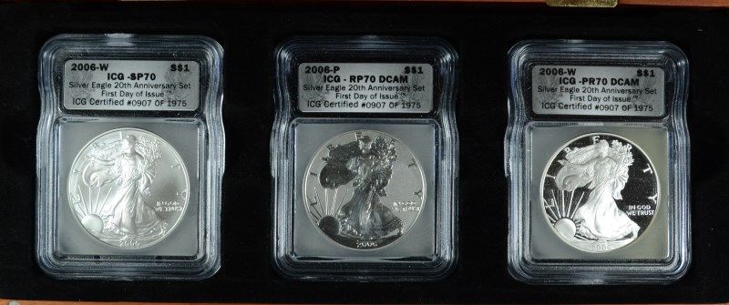 Details About 2006 20th Anniversary Silver Eagle Three Coin Set