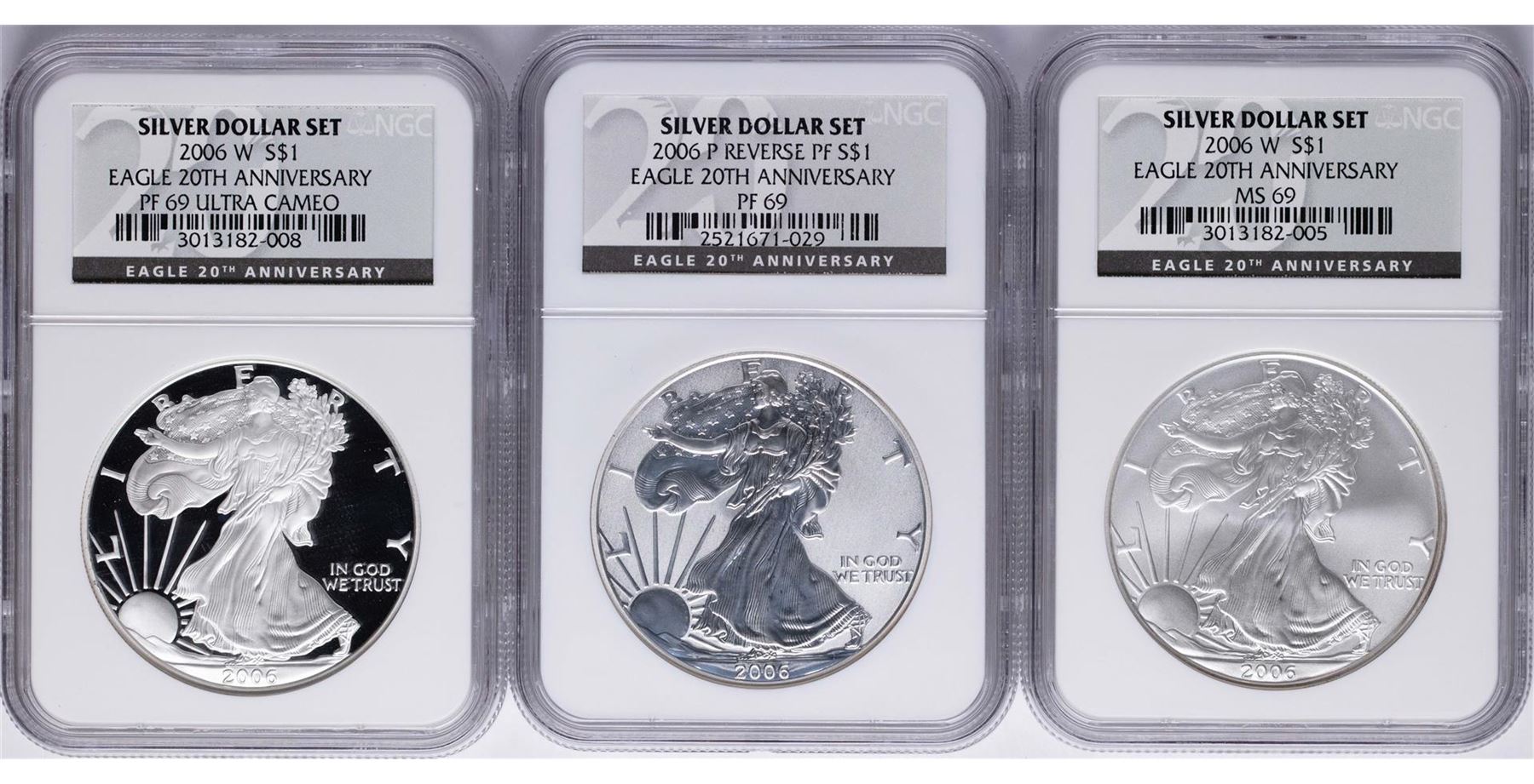 2006 Silver Eagle 20th Anniversary 3 Coin Pcgs Set