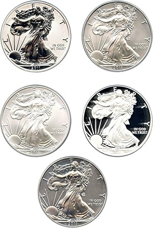 Looking back to 2011 the united states mint celebrated the 25th anniversary of the american silver eagle coin with the release of a brilliant five coin set that includes the bullion proof and uncirculated versions of the coin along with a. The american silver eagle is the worlds most popular coin with 473 million sold in 2015 alone. The silver eagle celebrates over 25 years of circulation in a box set of five coins.