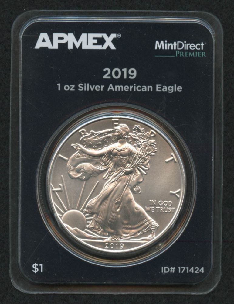 2019 Silver Eagle 1 Dollar Coin In Apmex Case