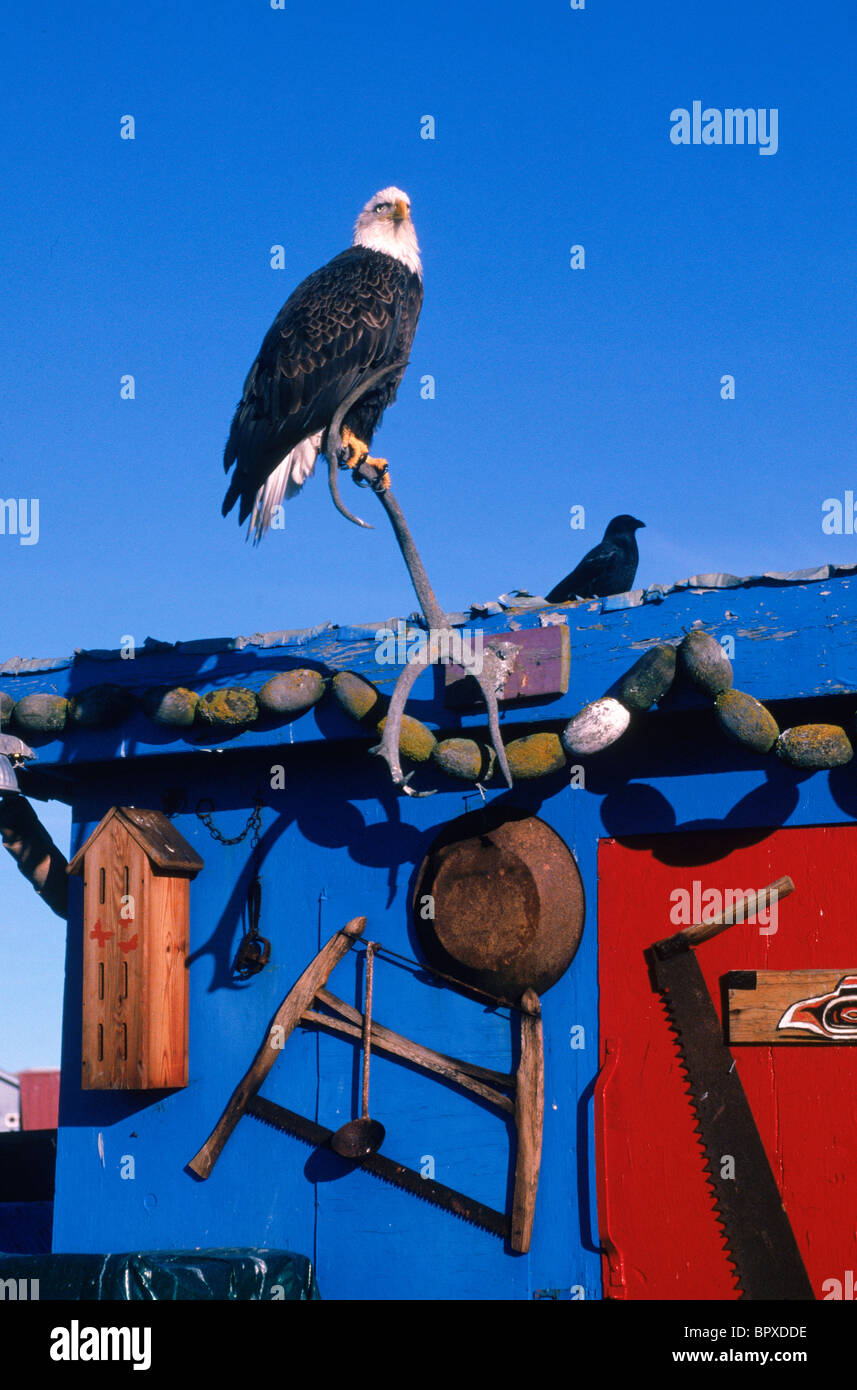 A Bald Eagle Haliaeetus Leucocephalus Perches On A Caribou