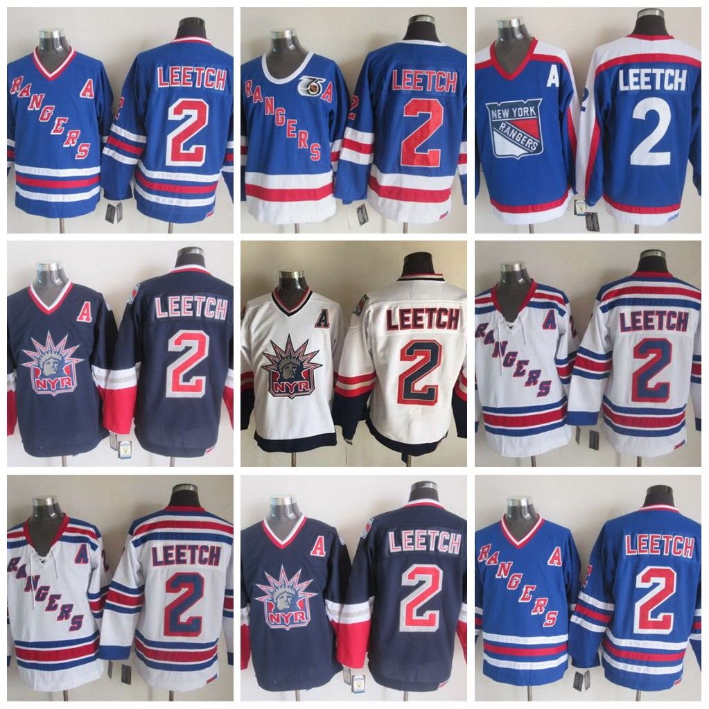 2 Brian Leetch Jersey A Patch Stitched 75th Anniversary Ice Hockey New York Ny Rangers Jerseys Blue Vintage Ccm Stadium Cheap