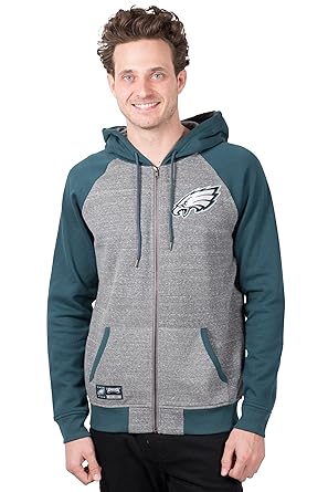 Ultra Game Nfl Philadelphia Eagles Mens Full Zip Hoodie Sweatshirt Raglan Jacket Team Color Gray X Large
