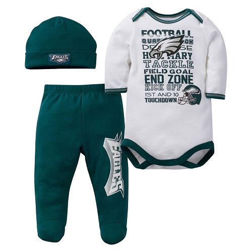 Baby Philadelphia Eagles 3 Piece Bodysuit Pants Cap Set