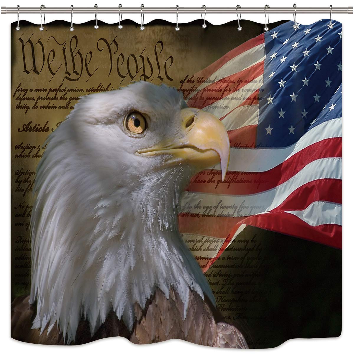 Riyidecor Bald Eagle American Flag Shower Curtain Set Usa Patriotic Stars And Stripe Flag Independence Fabric Waterproof Bathroom Home Decor Panel 12