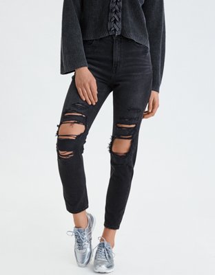 American Eagle Outfitters Mom Jeans Destroyed Ripped Black