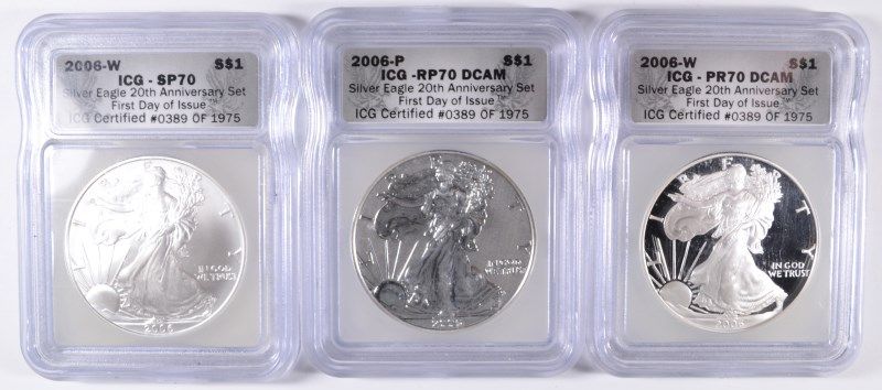 Details About 2006 20th Anniversary Silver Eagle Three Coin Set