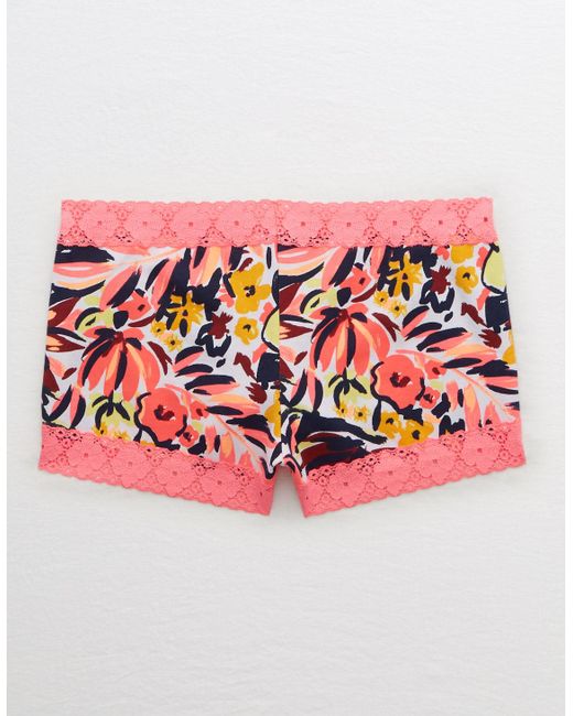 American Eagle Lace Trim Cotton Boyshort Undie In Pink For
