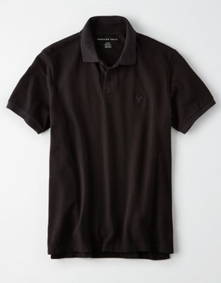 American Eagle Mens Black Solid Pique Flex Polo Polos