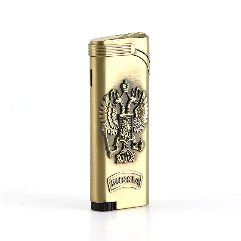 Us 509 15 Offretro Double Eagle Bronze Lighters Metal Russia Emblem Wheel Gas Cigarette Lighter Inflatable Butane Fire Smoker Best Gift In