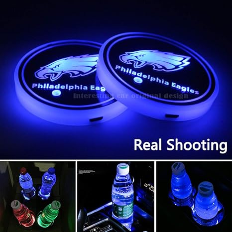 2pcs Nfl Philadelphia Eagles Team Logo Led Car Cup Holder Lights Accessories Usb Charging Mat Luminescent Cup Pad Colorful Dream Breathing