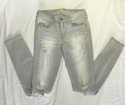 Womens American Eagle Super Stretch Jegging Crop Ripped Jeans Size 0 White Ebay