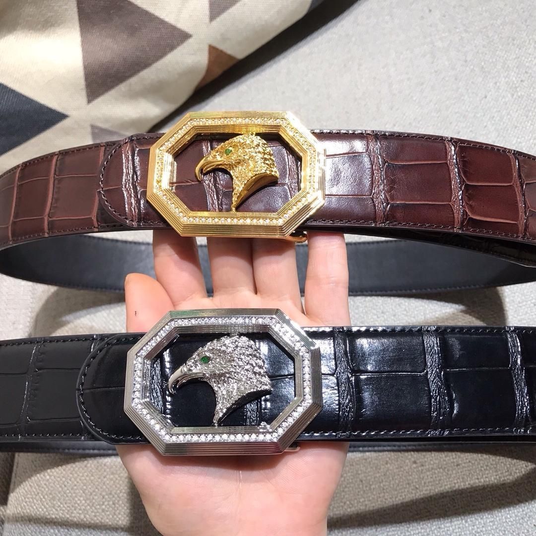 2018 Boutique Belt Eagle Head Steel Buckle Crocodile Pattern Simple Fashion Business Leisure Wide 38cm Lifting Belt Leather Belts For Men From