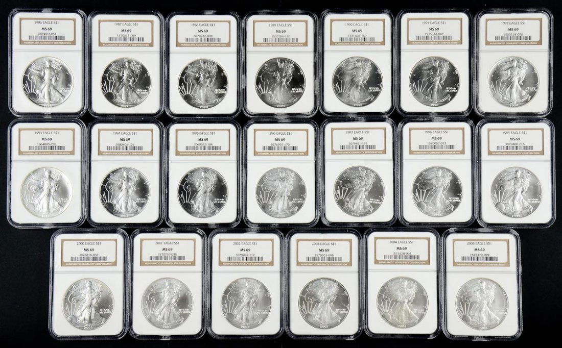 20 Piece 1986 To 2005 Silver Eagle Set Ms69 Ngc 653 Of