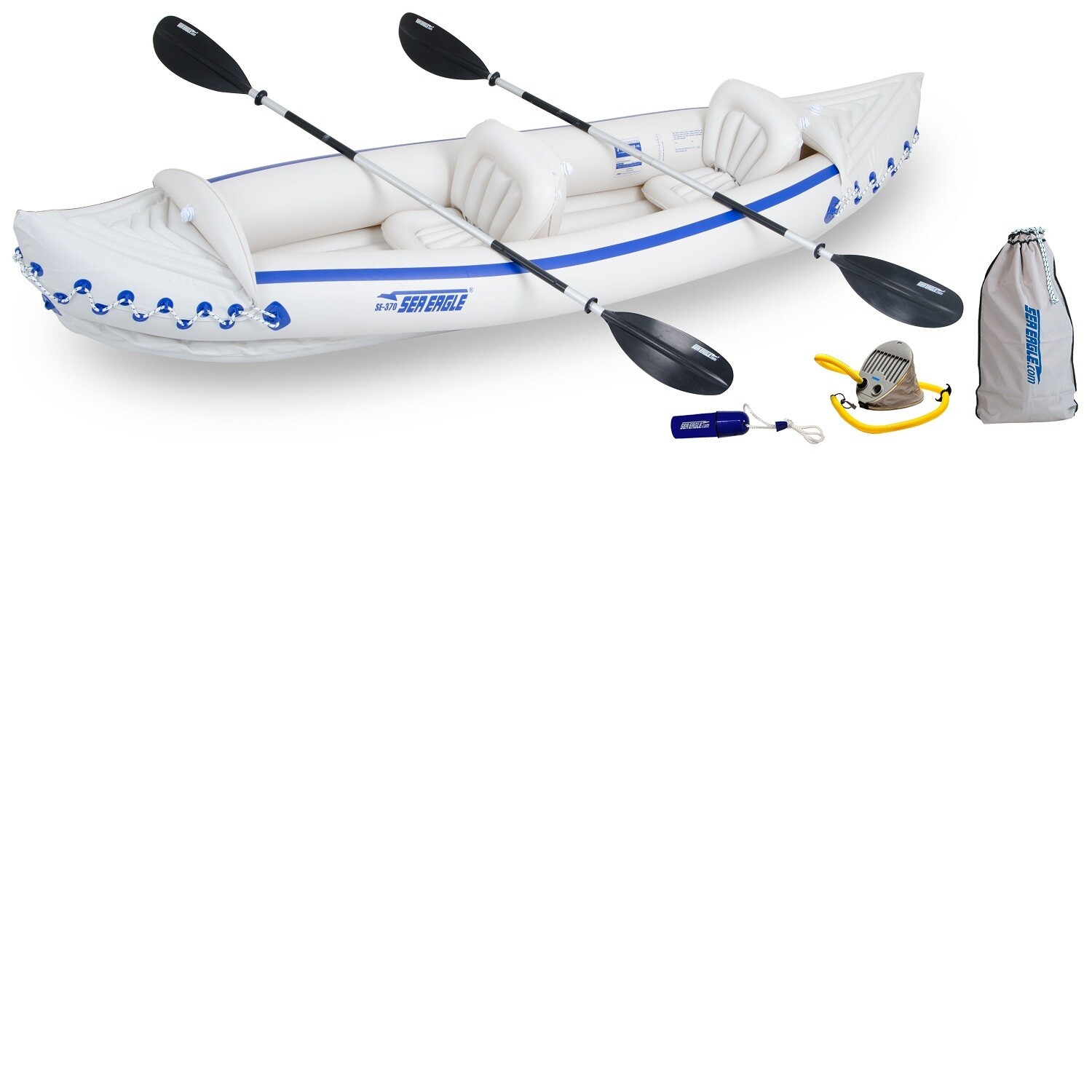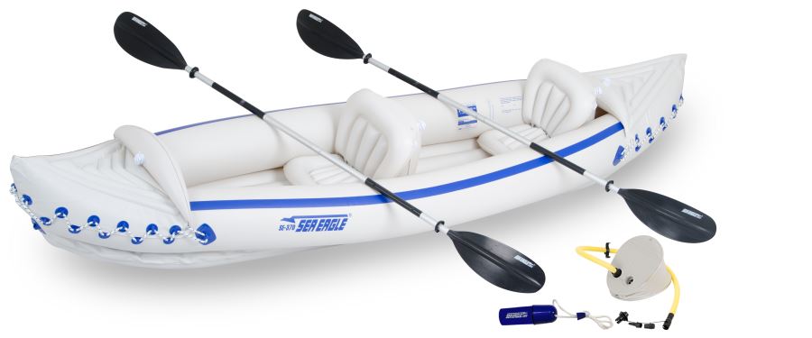 Sea Eagle Boats Se370k D Se370 Sport Kayak Deluxe Package Inflatable Sit Inside 2 3 Person 650 Lb Weight Capacity 32 Lb