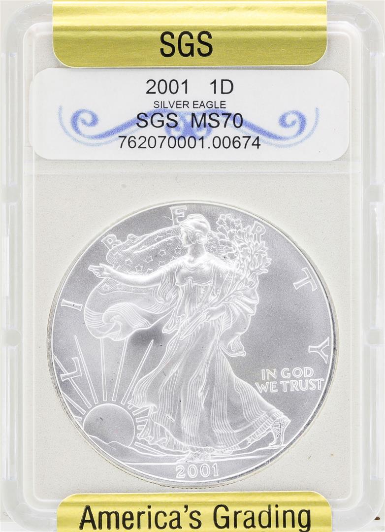 2001 1 American Silver Eagle Coin Sgs Ms70