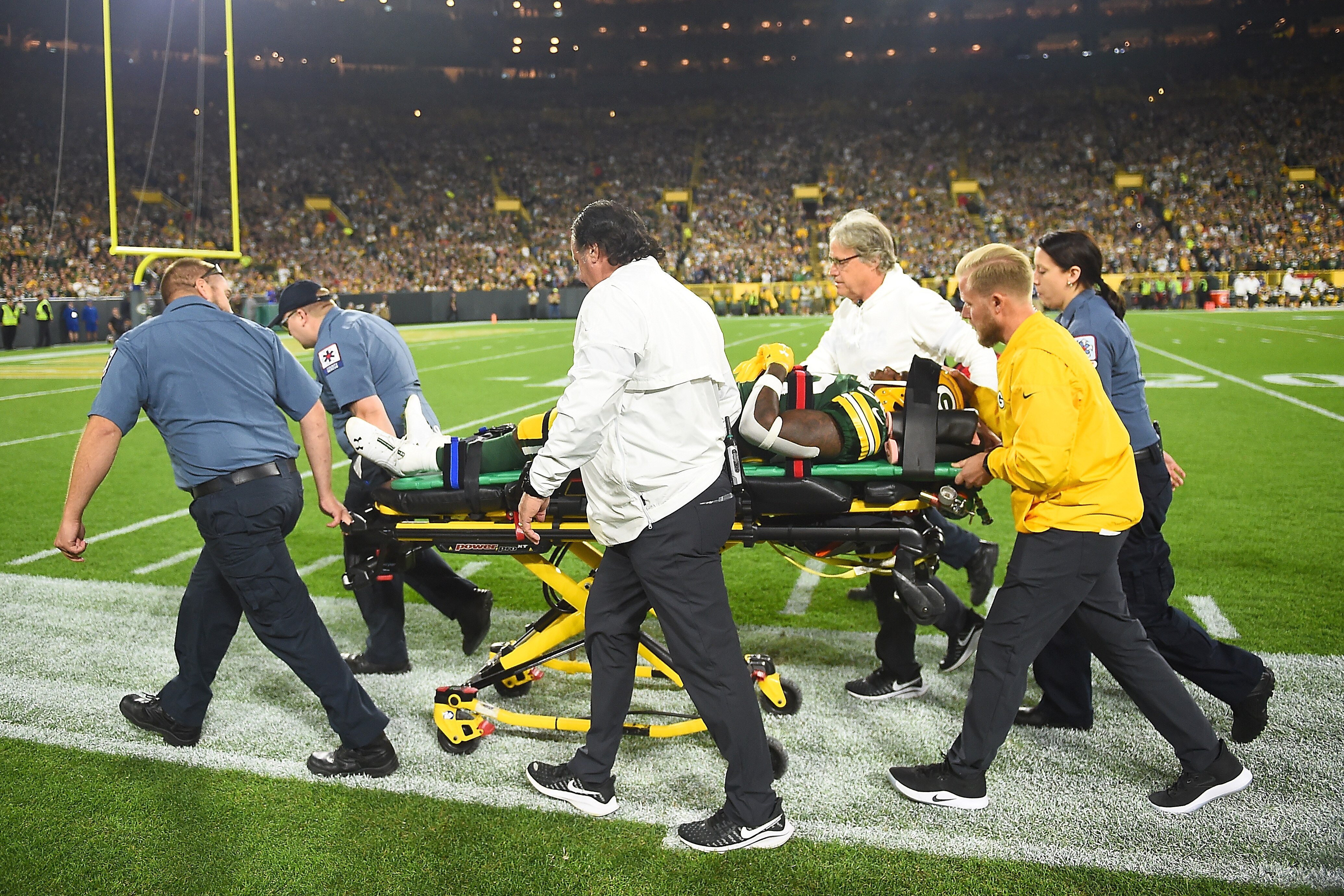 Packers Jamaal Williams Taken To Hospital After Helmet To