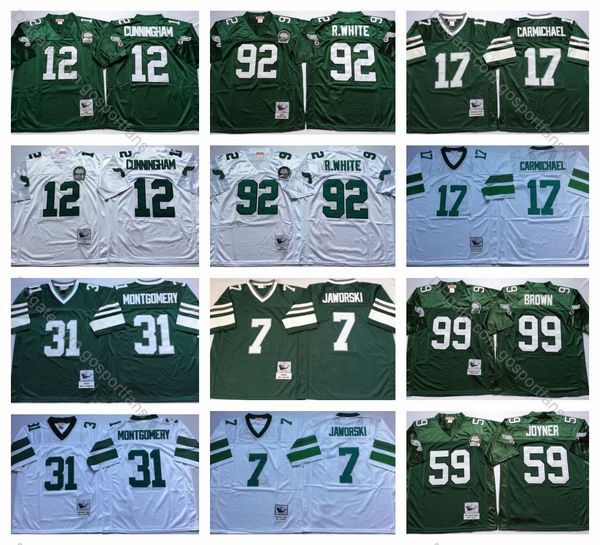 2019 Vintage Eagles Football Jersey Philadelphia 12 Randall Cunningham 17 Carmichael 31 Montgomery 59 Joyner 92 Reggie White 99 Brown 7 Jaworski From
