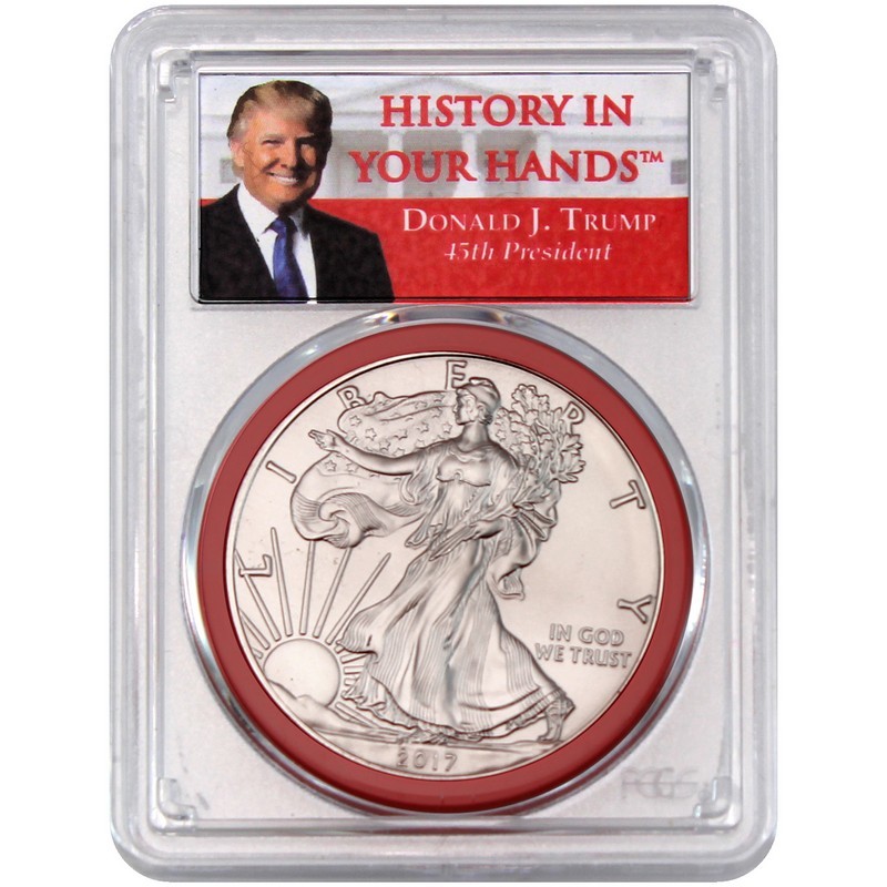 2017 Silver Eagle Pcgs Ms69 1 Of 2000 First Day Trump History In Your Hands Red Gasket Label