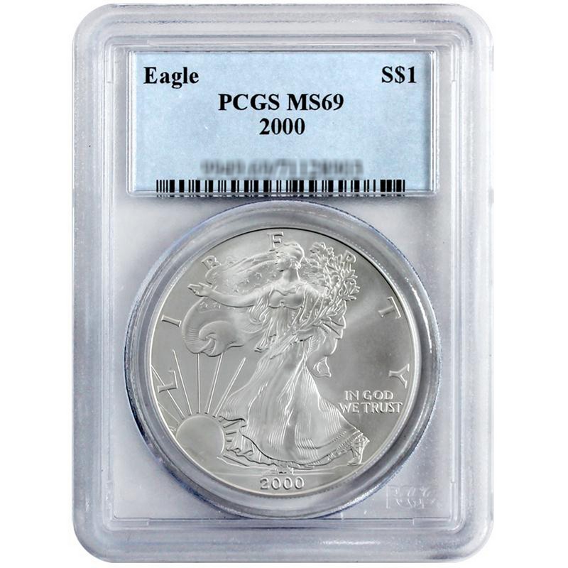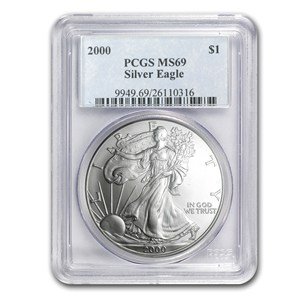 2000 American Silver Eagle Dollar In Pcgs Ms 69