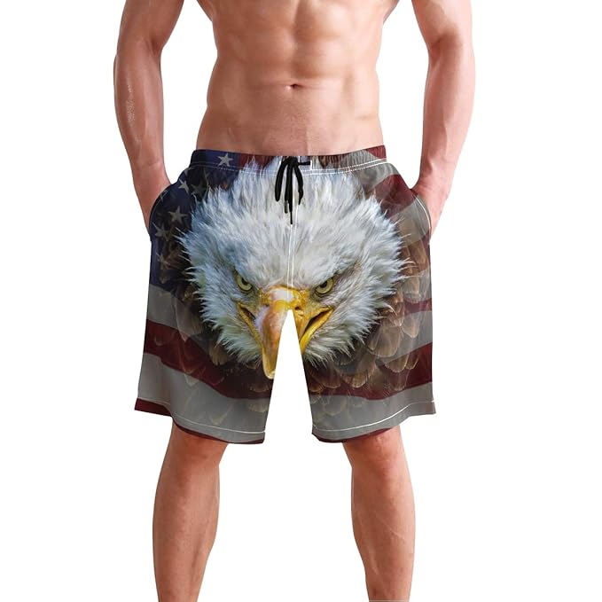Amazoncom Bald Eagle And American Flag Mens Swim Trunks