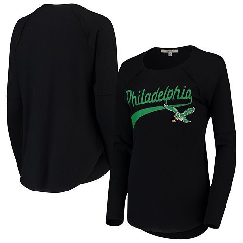 Philadelphia Eagles Junk Food Womens Color Block Racer Long Sleeve T Shirt Blackgray