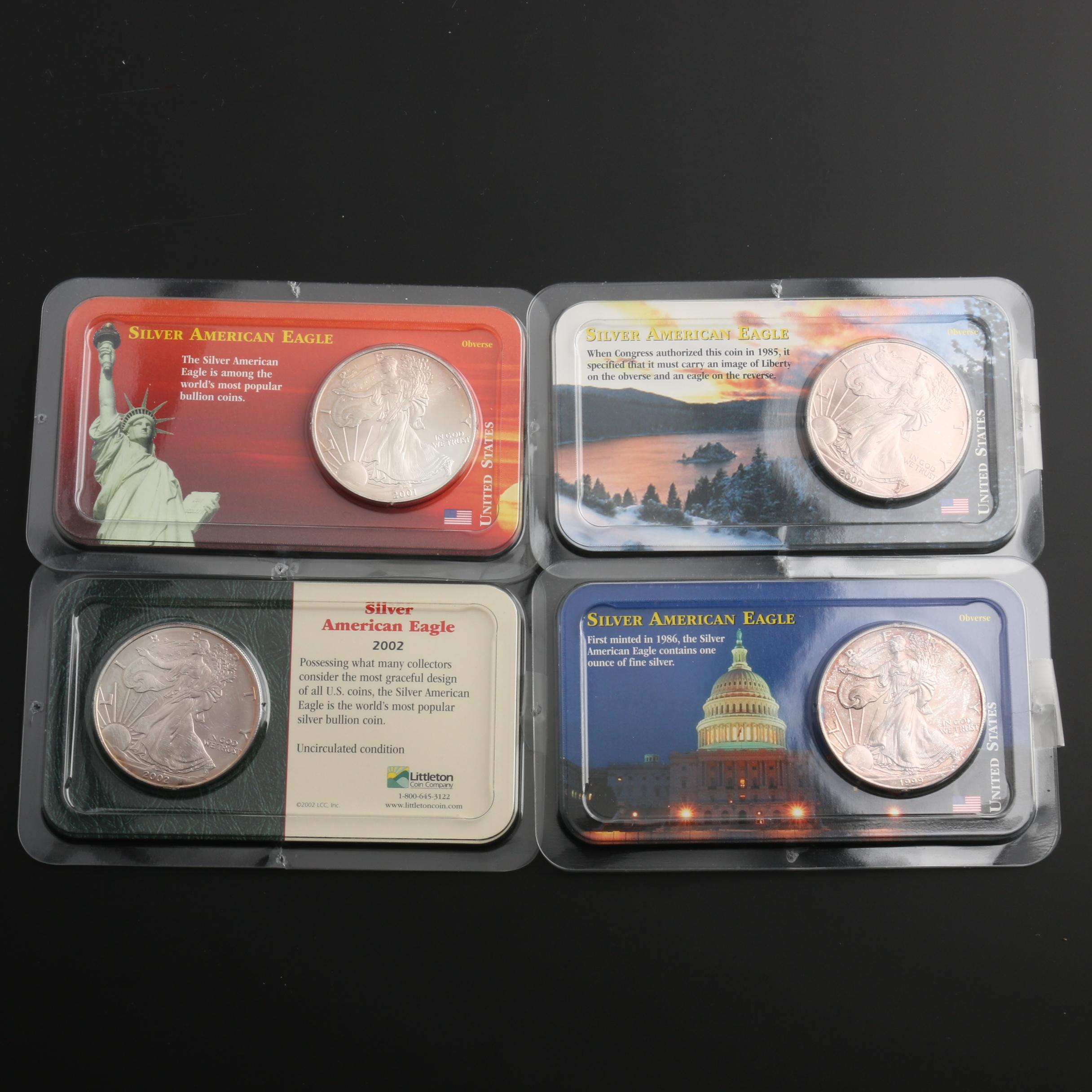 Group Of Four American Silver Eagle Bullion Coins 1999 To 2002