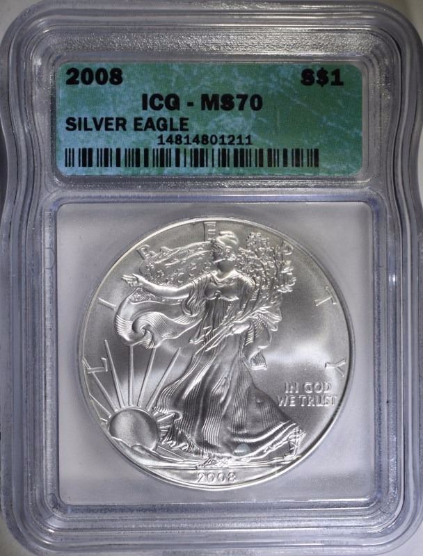 2008 American Silver Eagle Icg Ms 70