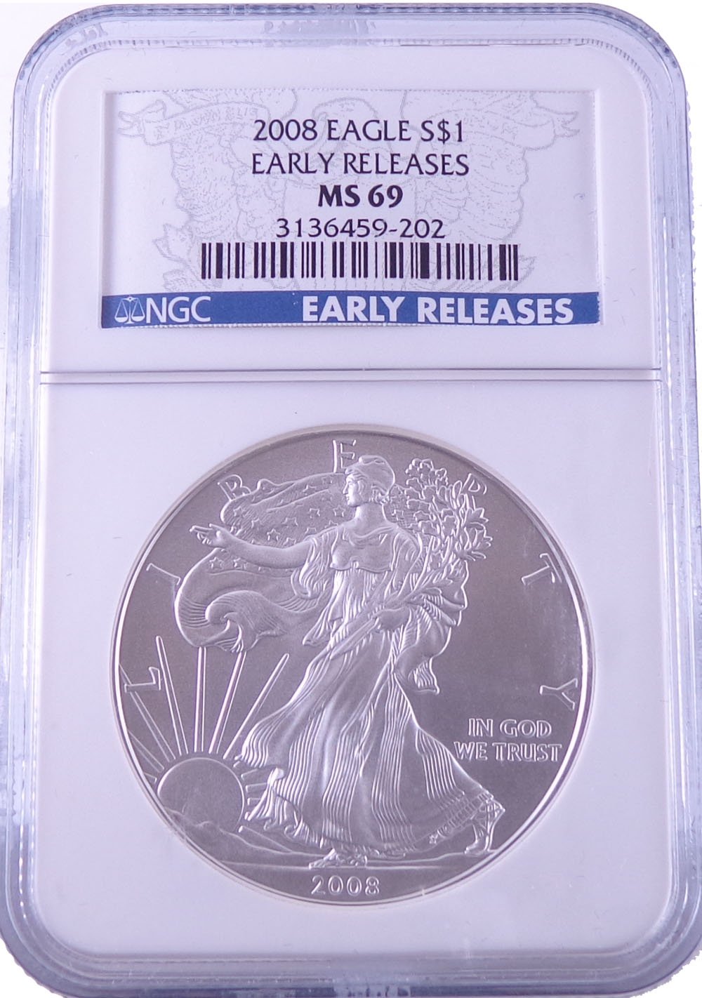 Details About 2008 American Silver Eagle Early Release Ngc Gem Uncirculated