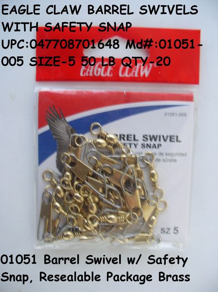 Eagle claw barrel swivels wsafety snap. Eagle claw the brand that started it all remains the staple of todays value conscious fisherman. No matter where you cast most frequently fishing swivels and snaps made of hardy metals and plated with tough materials deliver reliable performance that you can count on again and again.