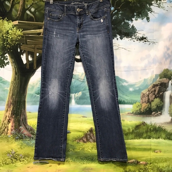 Details About American Eagle Kick Bootcut Distressed Jeans Ripped Super Stretch Jeans Size 2