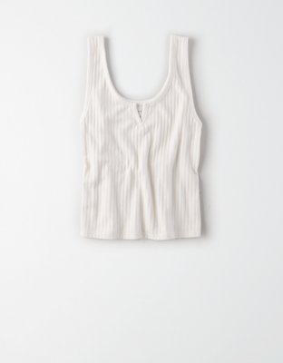 Ae Button Front Tank Top Natural White American Eagle