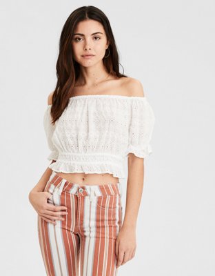 American Eagle Crop Tops Ae Off The Shoulder Bubble Crop