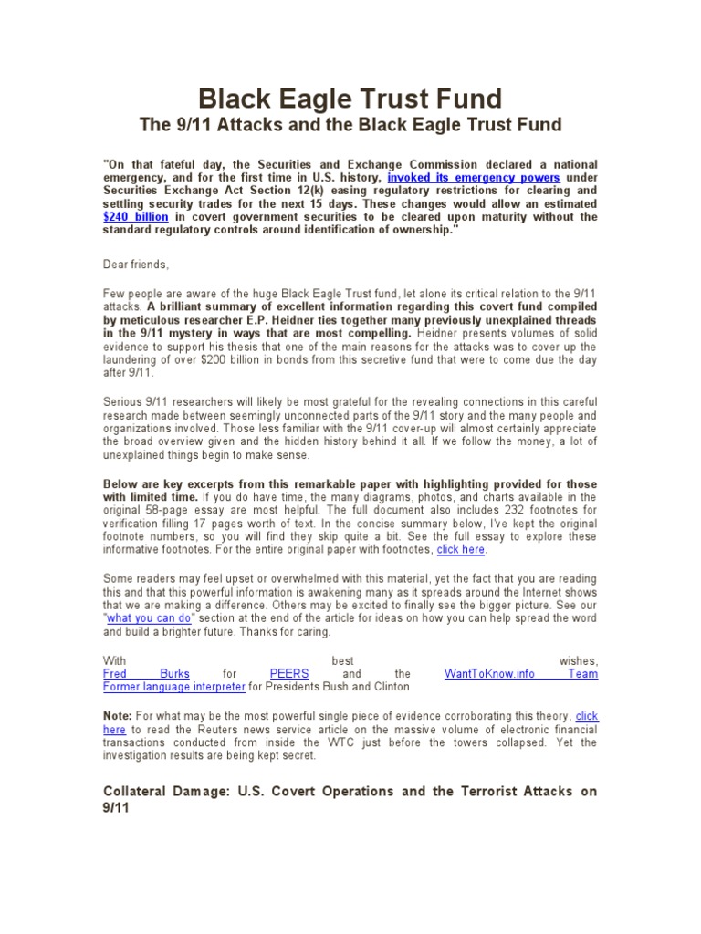 The 9 11 Attacks And The Black Eagle Trust Fund 911