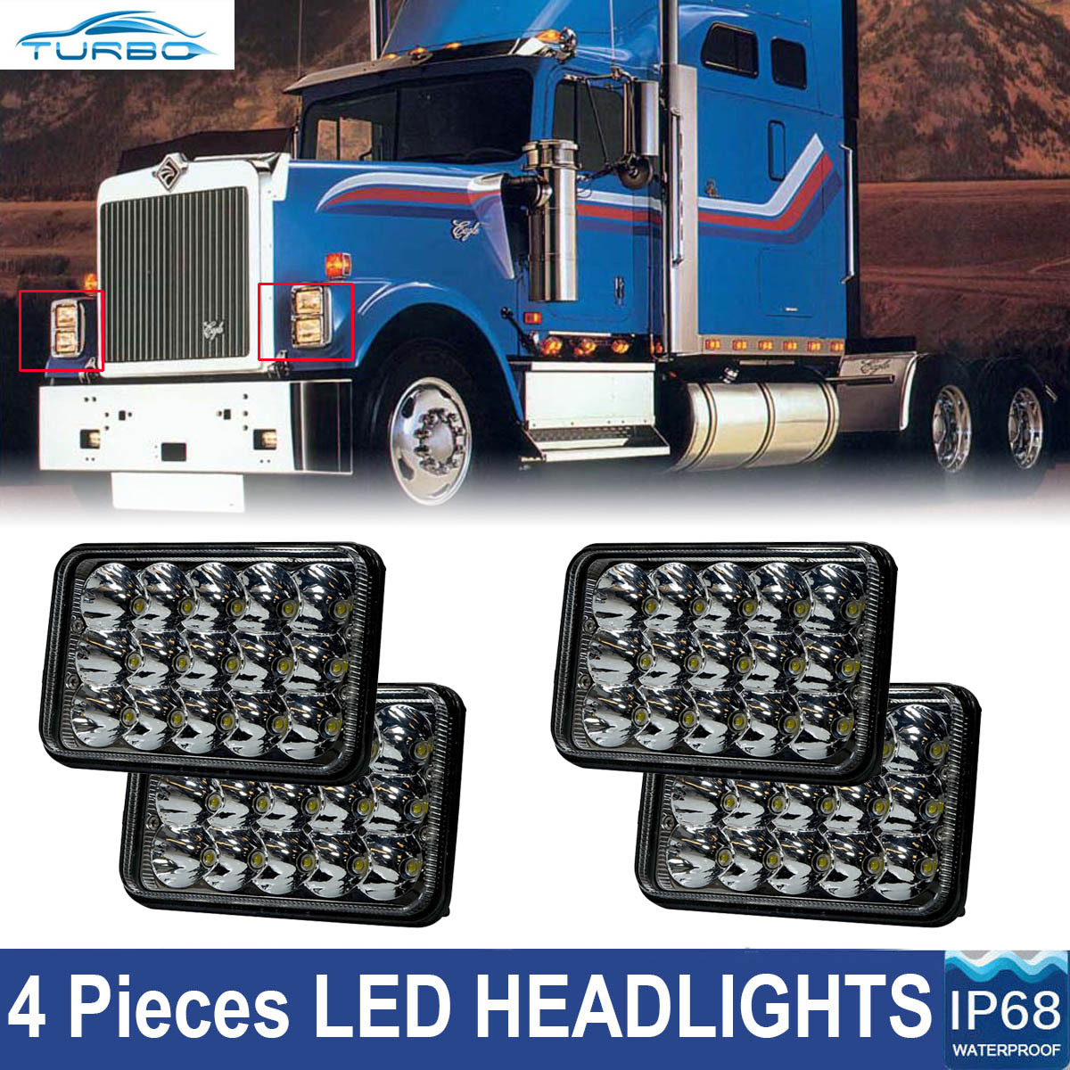 Details About 4x Chrome Led Sealed Headlights Upgrade For International 9300 9300 Eagle Series
