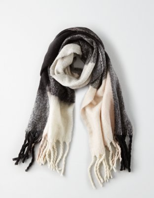 Ae Aerie American Eagle Aeo Plaid Blanket Scarf Black Grey