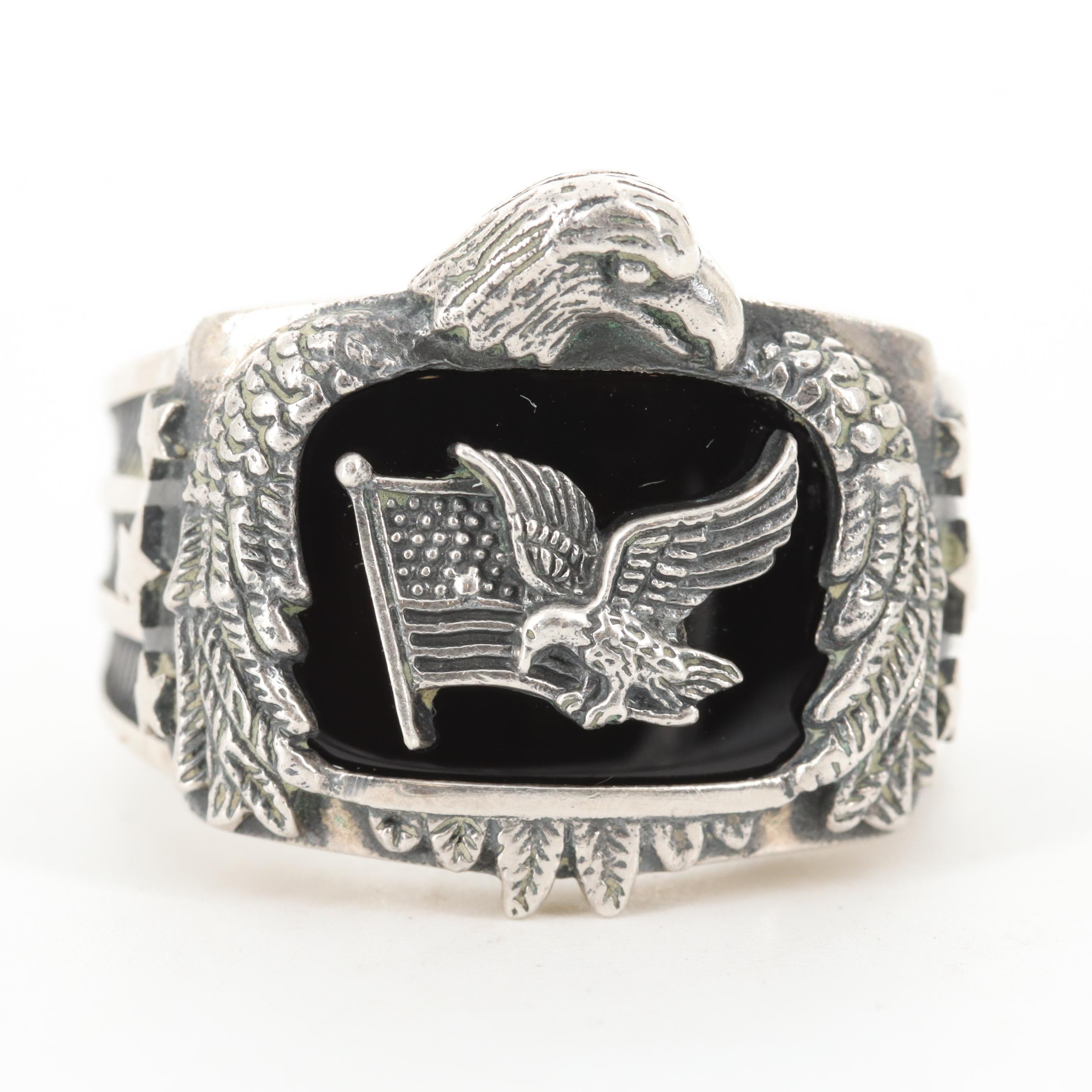 Details About Bradford Exchange God Bless America Eagle Onyx Sterling Silver Ring Sz 135