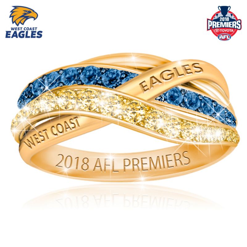 Afl West Coast Eagles Womens Team Ring With Team Colour Diamonesk Simulated Gems