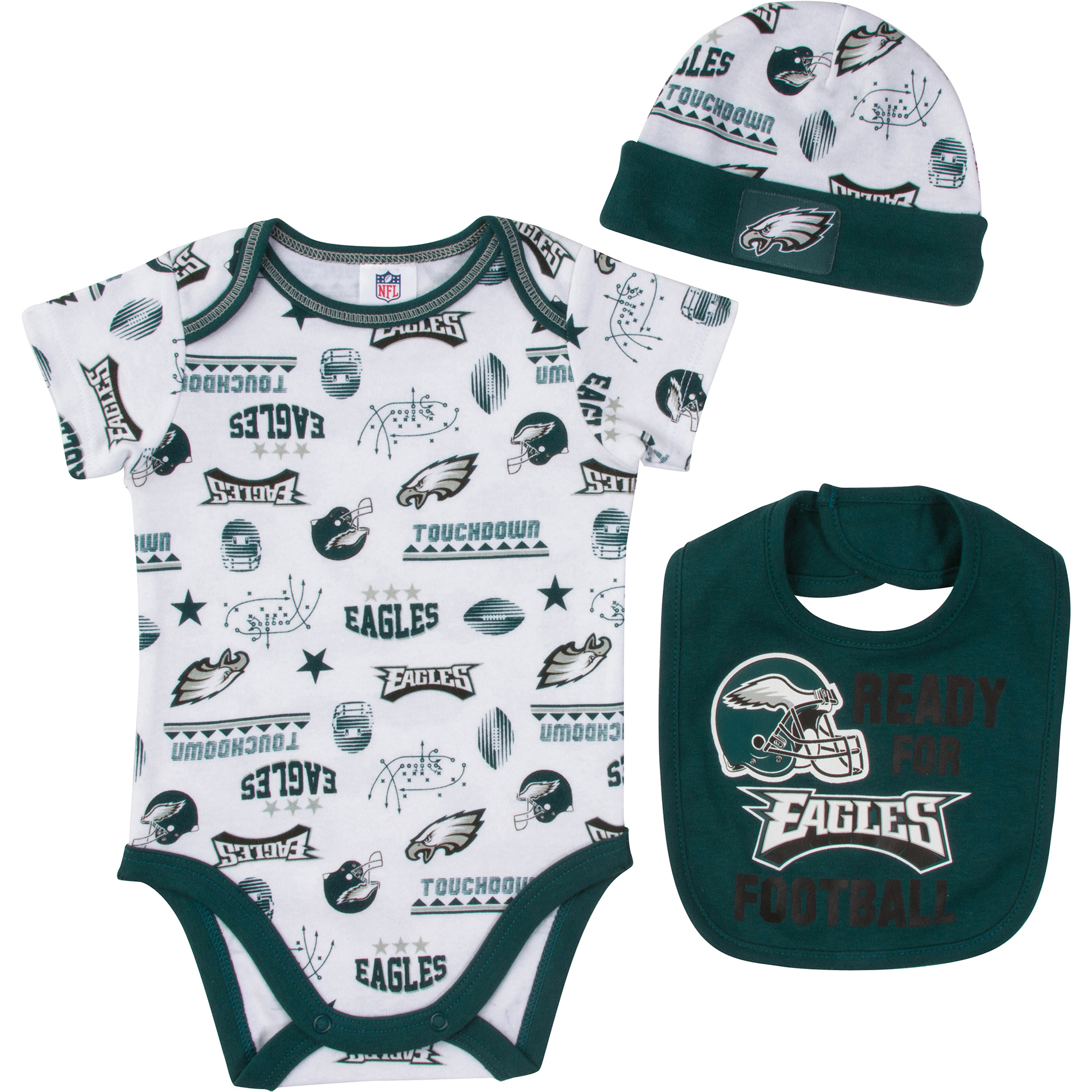 Details About Philadelphia Eagles Playmaker 3 Pack Bodysuit Onesie Set