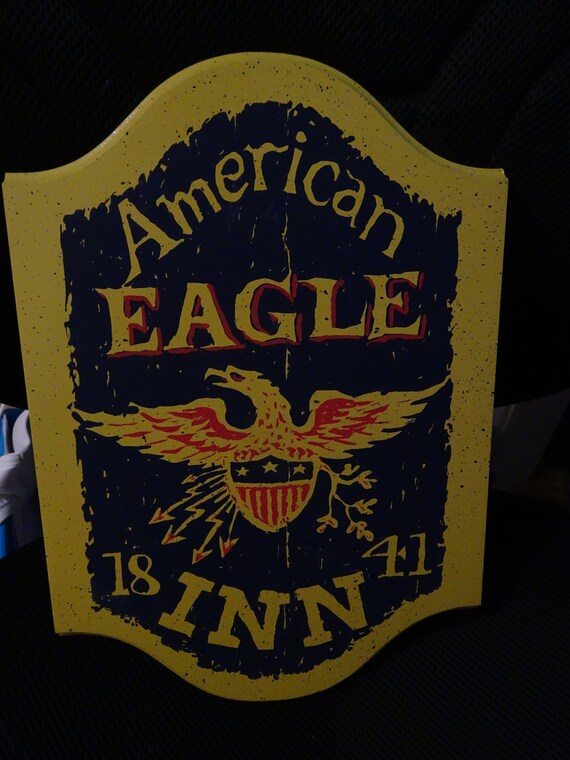 Vintage Wood Plaque American Eagle Inn 1841 Bar Decor Man Cave Decor American Eagle Stars Stripes Patriotic Sign Masketeers Inc