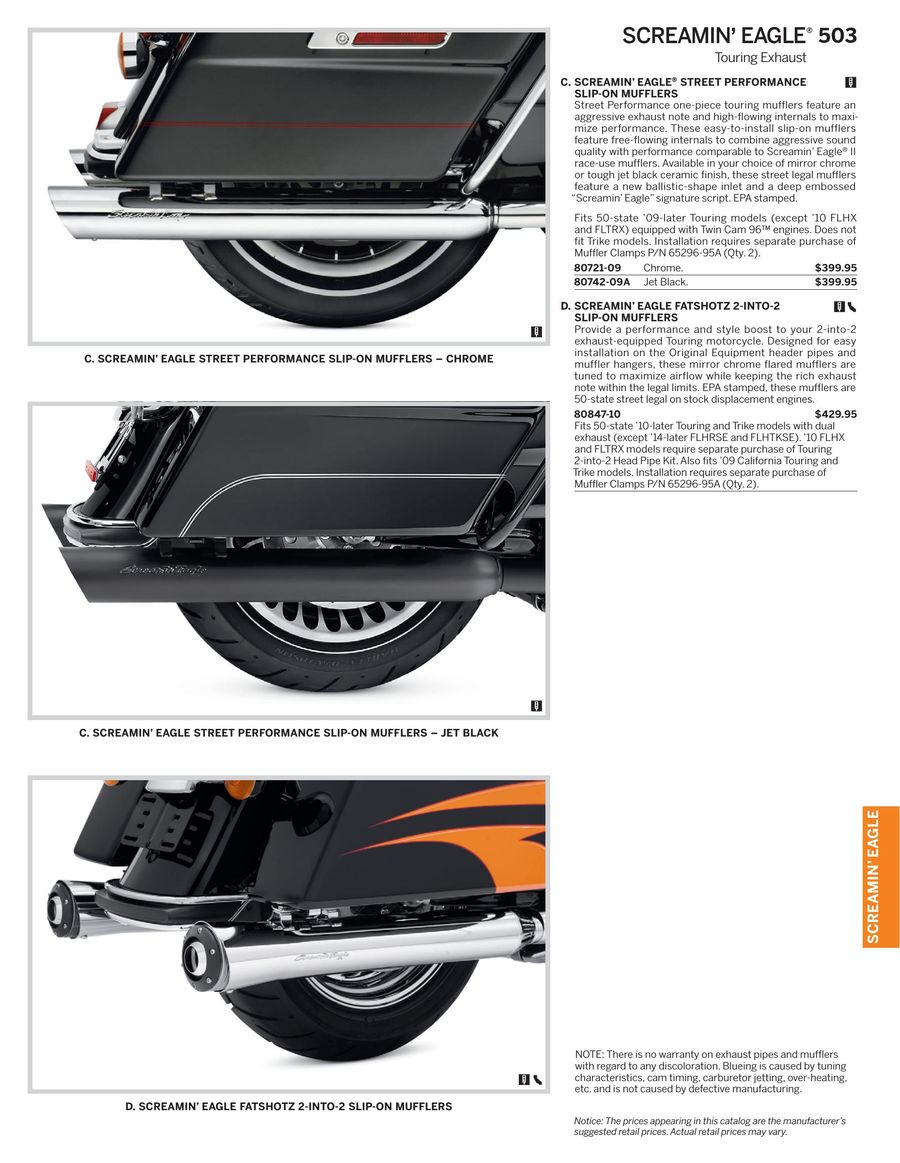 Screamin Eagle Harley Exhaust Mufflers Roadking Glide