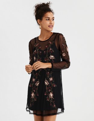 Ae Mesh Floral Fit Flare Dress